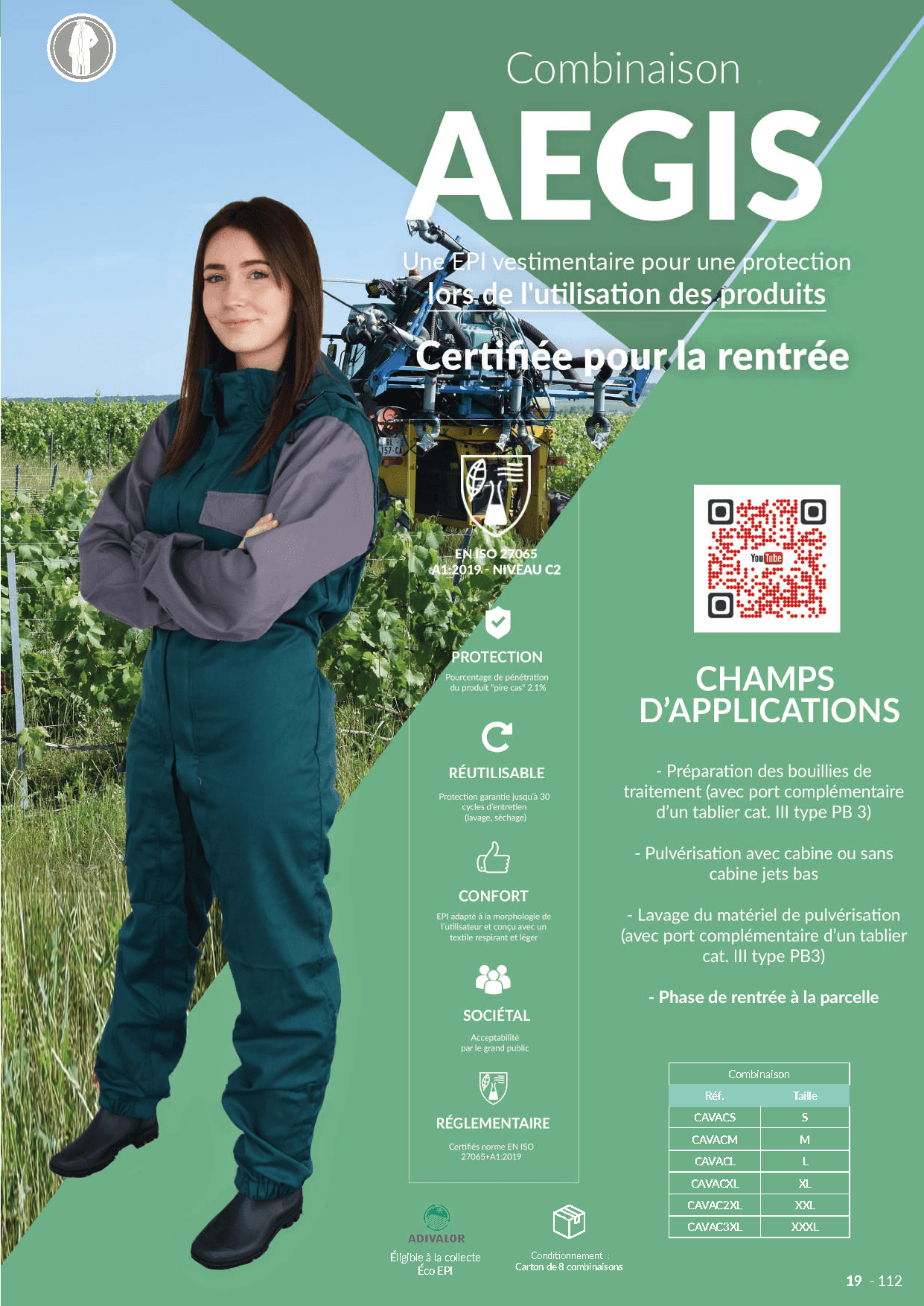 - Réglementaire : Certifié norme EN ISO 27065+A1:2019 – Niveau C2